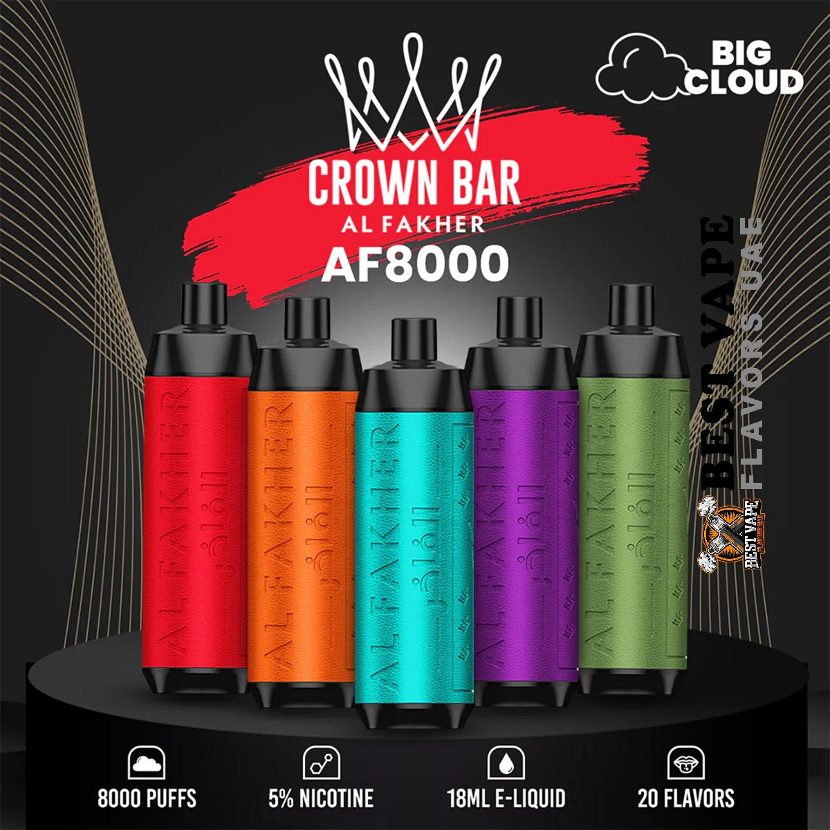 - Packaging Includes: 1x Al Fakher Crown Bar 8000 Puffs Disposable Vape Device