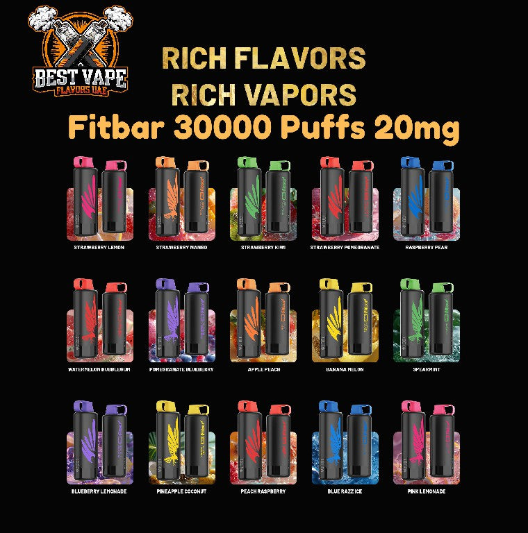 The Fitbar 30000 Puffs comes in a wide variety of flavors, including Strawberry Lemon, Watermelon Bubblegum, Peach Raspberry, Blue Razz Ice, and many more to suit all preferences.