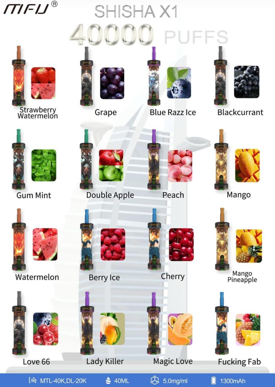 MFU Shisha X1 40000 Puffs Disposable Vape | 40mL Dual Mesh Coil Rechargeable