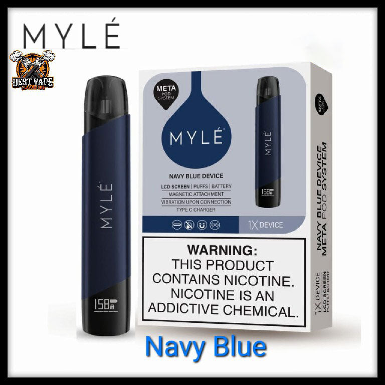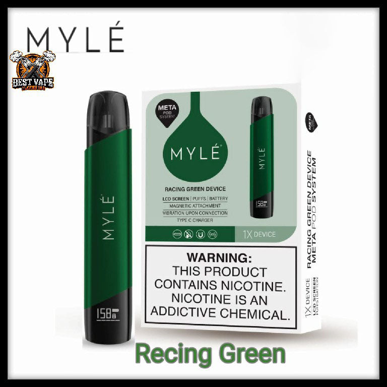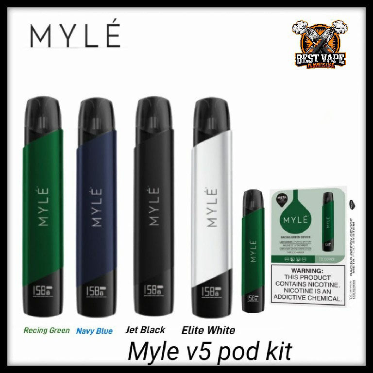 Get ready for a powerful combination of sleek style, portability, and cutting-edge features that will redefine your expectations. The MYLE V5 Meta Pod System Kit is available in four stylish colors: Elite White, Navy Blue, Racing Green, and Jet Black. Whether you’re a casual vaper or a seasoned enthusiast, this pod system has everything you need to elevate your vaping experience to new heights!