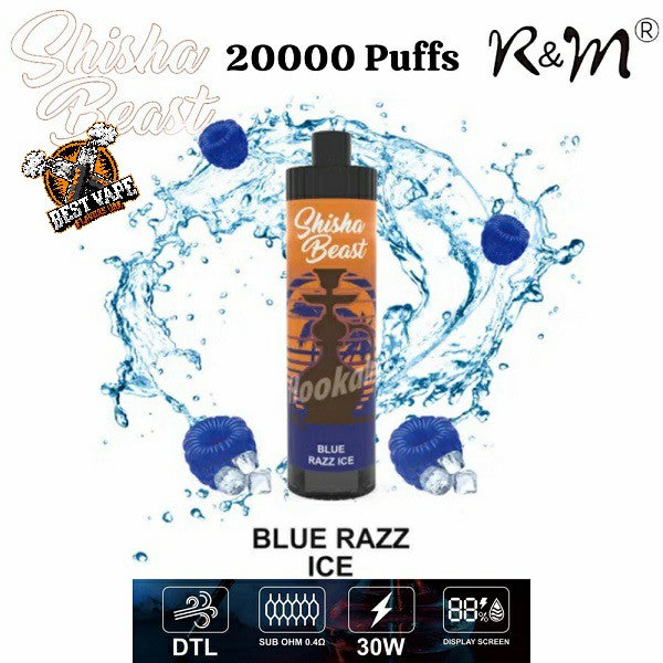 Introducing the R&M ShiSha Beast 20000 Puffs Disposable Vape, the ultimate vaping device designed to elevate your experience with unmatched performance, convenience, and style. Offering an impressive 20000 puffs, this disposable vape is perfect for DTL (Direct To Lung) vaping, creating huge clouds with every puff, thanks to its sub-ohm 0.4Ω coil and Mesh Coil Technology.
