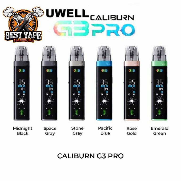 Available in a variety of stunning colors, the Uwell Caliburn G3 Pro Pod Kit is the perfect combination of performance and design, making it a must-have for anyone in Dubai looking for a top-tier pod system.