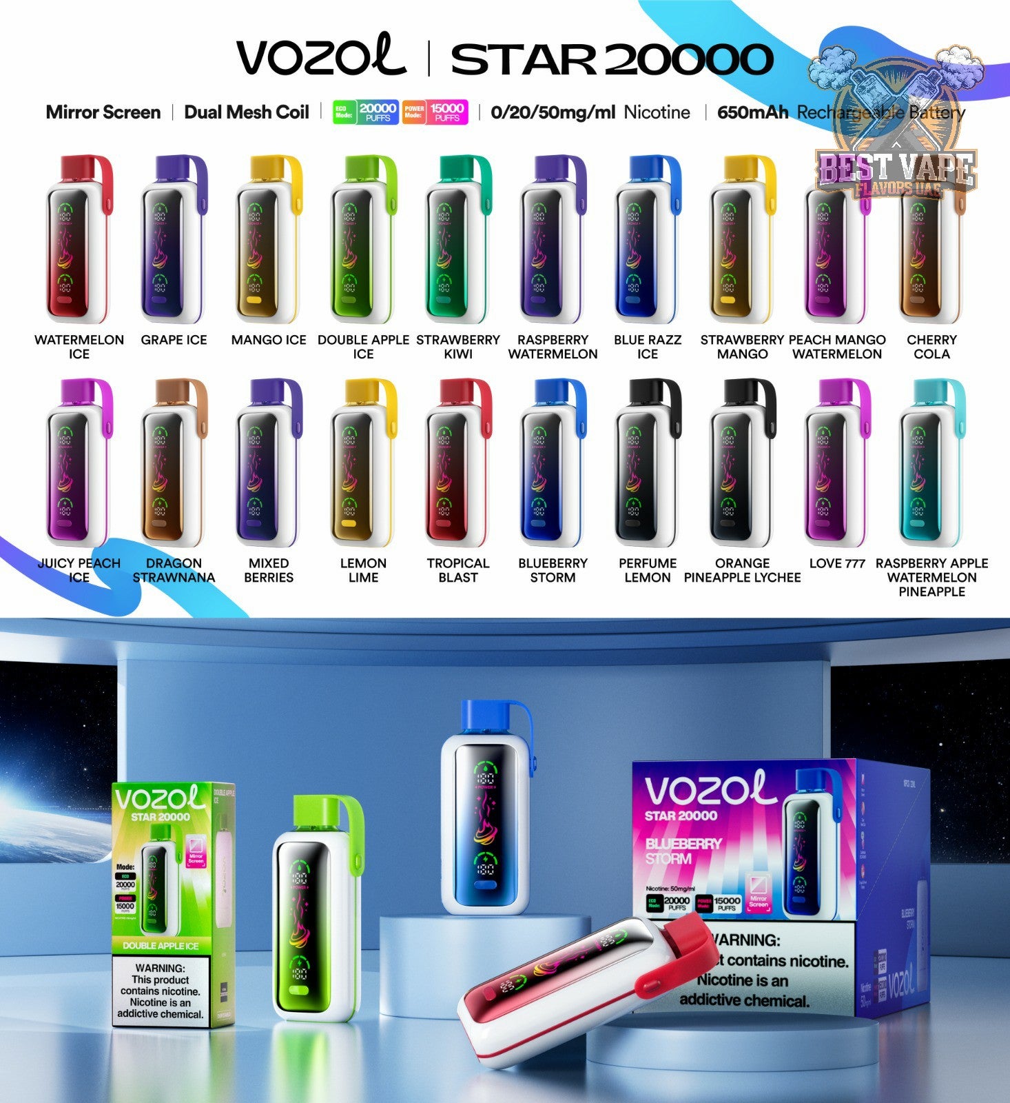 Vozol Star 20000 Puffs Dual Power Disposable Vape – Ultimate Vaping Experience in Dubai