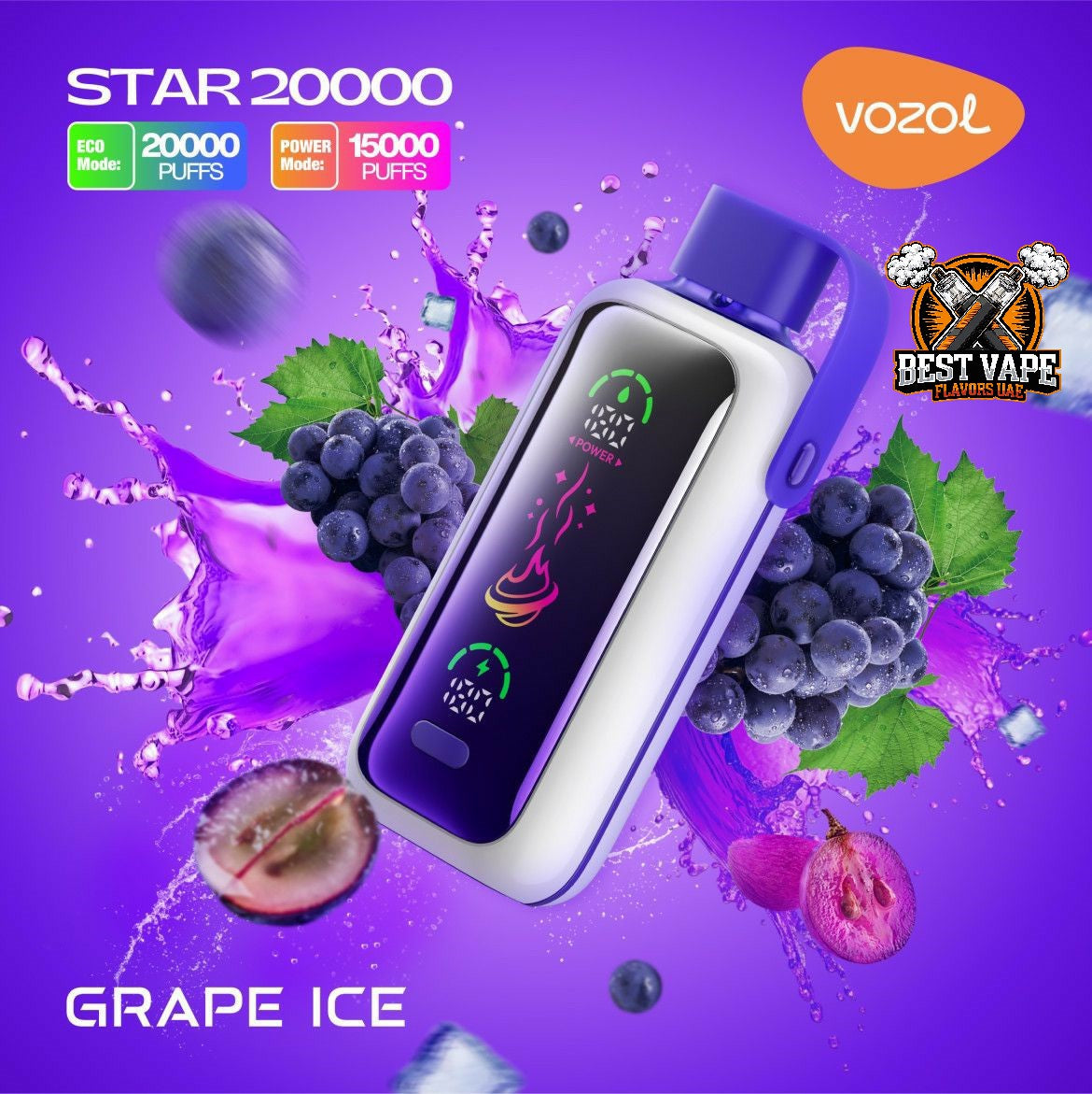 A: The Vozol Star comes in a wide variety of 20+ flavors, including popular options like Watermelon Ice, Mango Ice, and Blue Razz Ice.